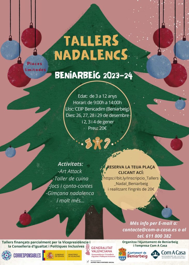 La Regidoria d’Educació ofereix un any més els tallers nadalencs, per tal que els xiquets i les xiquetes en edat escolar d’infantil i primària disposen d’una oferta d’activitats , alhora que es facilite la conciliació laboral de les famílies. L’activitat compta amb els suport del pla CORRESPONSABLES del Ministeri d’Igualtat del Govern d’Espanya i de la Conselleria d’Igualtat i Polítiques Inclusives de la Generalitat Valenciana.