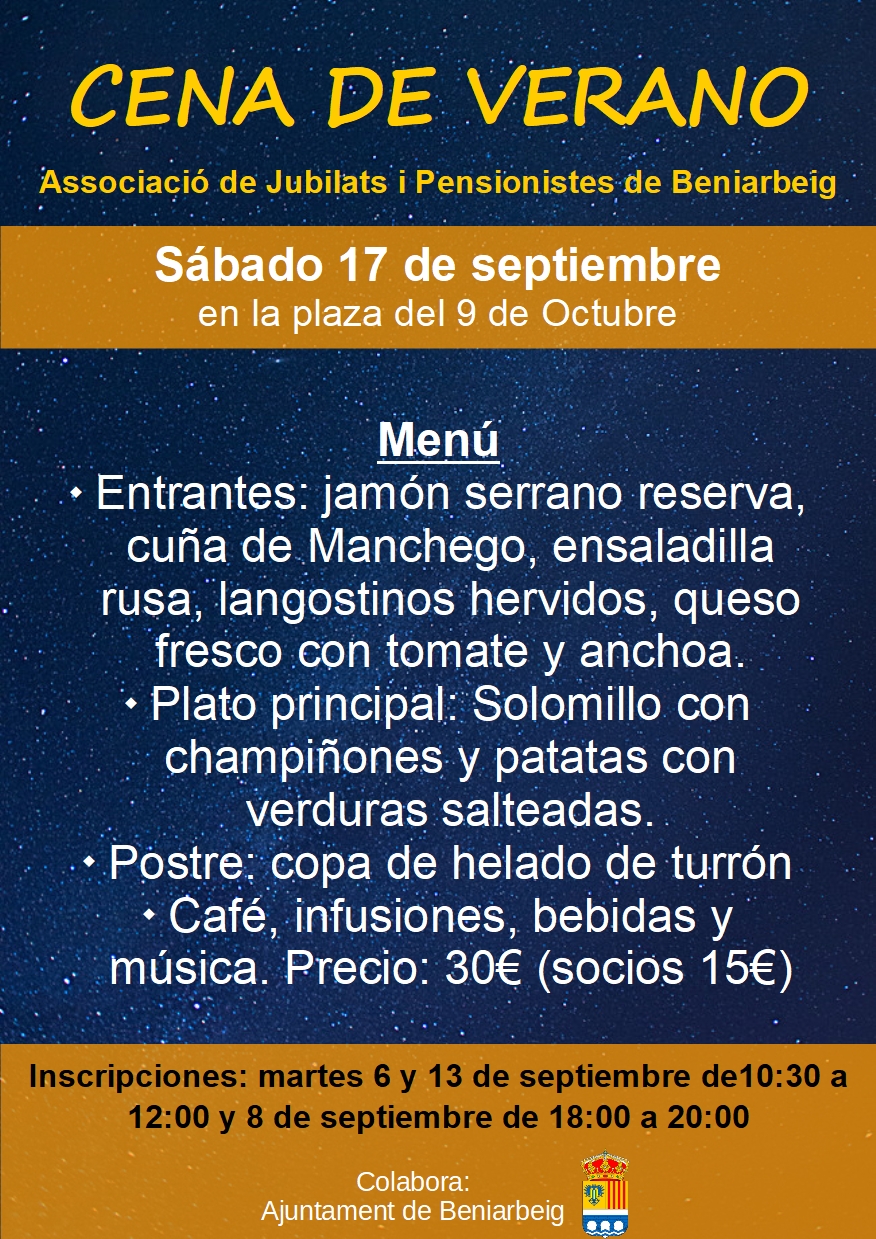 Estás en: Inici » Esdeveniments » Sopar d’estiu – Jubilats i Pensionistes