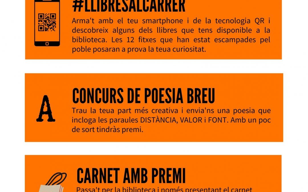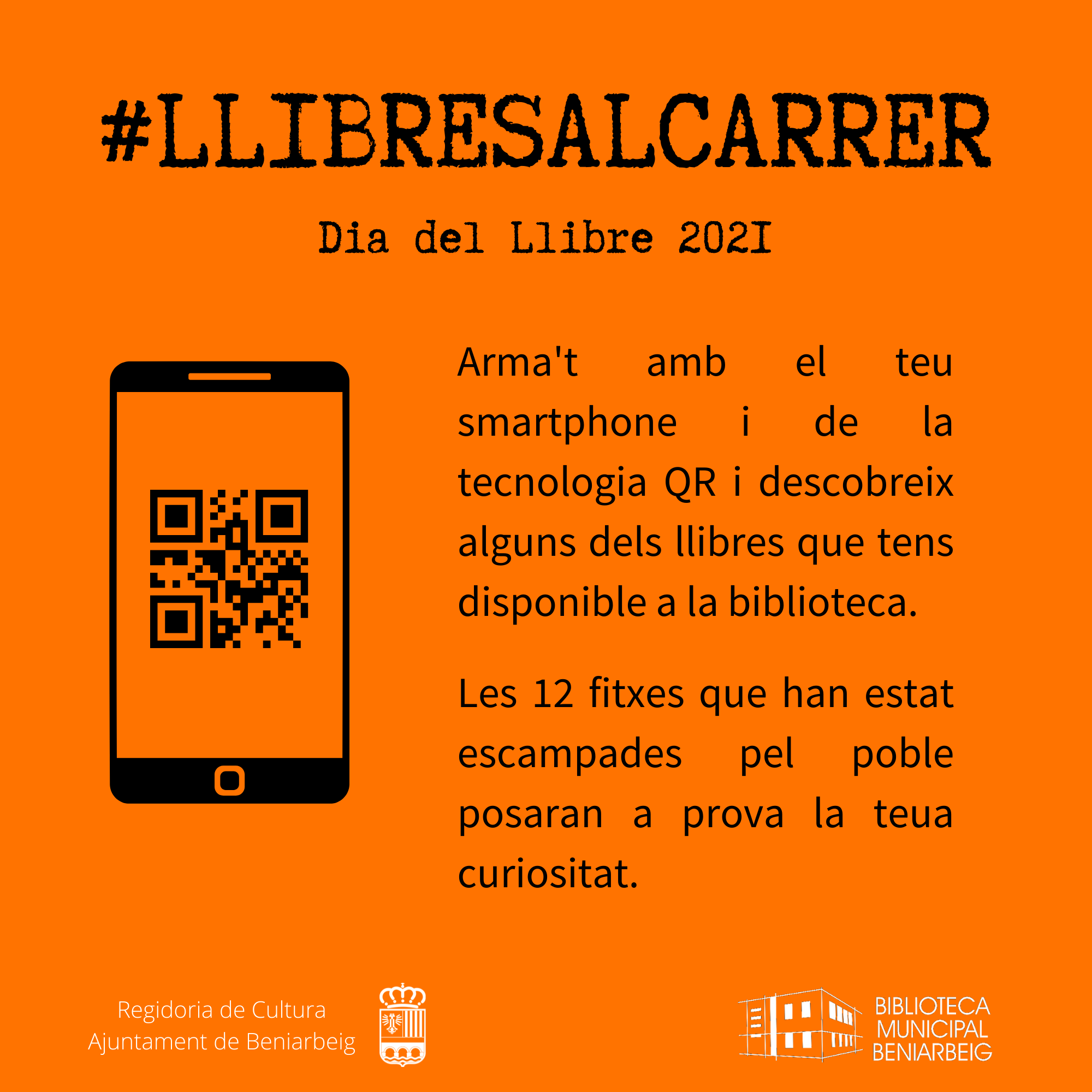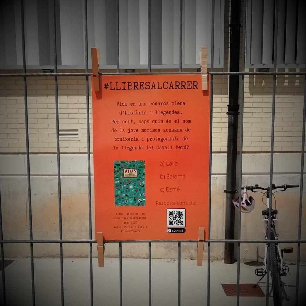 Amb la proximitat del 23 d’abril com a Dia del Llibre s’han preparat diverses activitats relacionades amb els llibres i la lectura. Per una part s’han instal·lat 12 fitxes en diferents punts del casc urbà en una iniciativa que des de l’organització han batejat com a #LLIBRESALCARRER i amb les que organitzadors pretenen donar conèixer i que servesquen com a mostra de les diferent tipus de llibres que es poden trobar a la biblioteca. Així ho confirma el bibliotecari Pau Banyó Magraner, qui explica que “s’han intentat triar llibres infantils, juvenils, d’adults, de temes concrets, de teatre, d’autors locals i en diferents llengües, per a fer vore tota la varietat que tenim”. Cada fitxa planteja una pregunta relacionada amb el tema del que tracta el llibre, i per a saber la resposta tan sols s’ha d’escanejar un codi QR amb el telèfon mòbil.