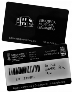 Per una altra banda, des de la Biblioteca Municipal de Beniarbeig també es vol continuar amb la campanya de foment d’expedició dels nous carnets de la Xarxa Pública de Lectura Valenciana. Un carnet que és vàlid per a la biblioteca local però també per a la resta de biblioteques valencianes. A més, si el mes passat s’anunciava que tots aquells que tingueren carnet serien obsequiats amb una bossa de tela, ara també se suma un nou al·licient per traure’s el carnet, ja que a partir d’ara els usuaris beniarbegins estaran entre els pocs municipis que comptaran amb carnets de PVC, un material molt més fort i durador que els anteriors carnets de cartró. Amb aquests canvi de model de carnet serà possible lliurar-li a l’instant el nou carnet a l’usuari, qui a partir d’ara tampoc caldrà que aporte cap fotografia.